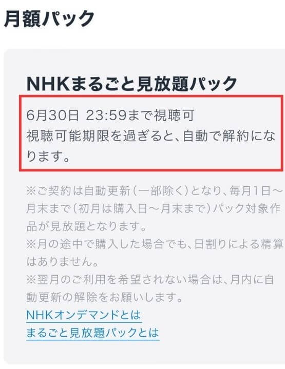 U-NEXTのNHKパックは、一度購入するとデフォルトで「翌月も自動で更新する」という設定になります。